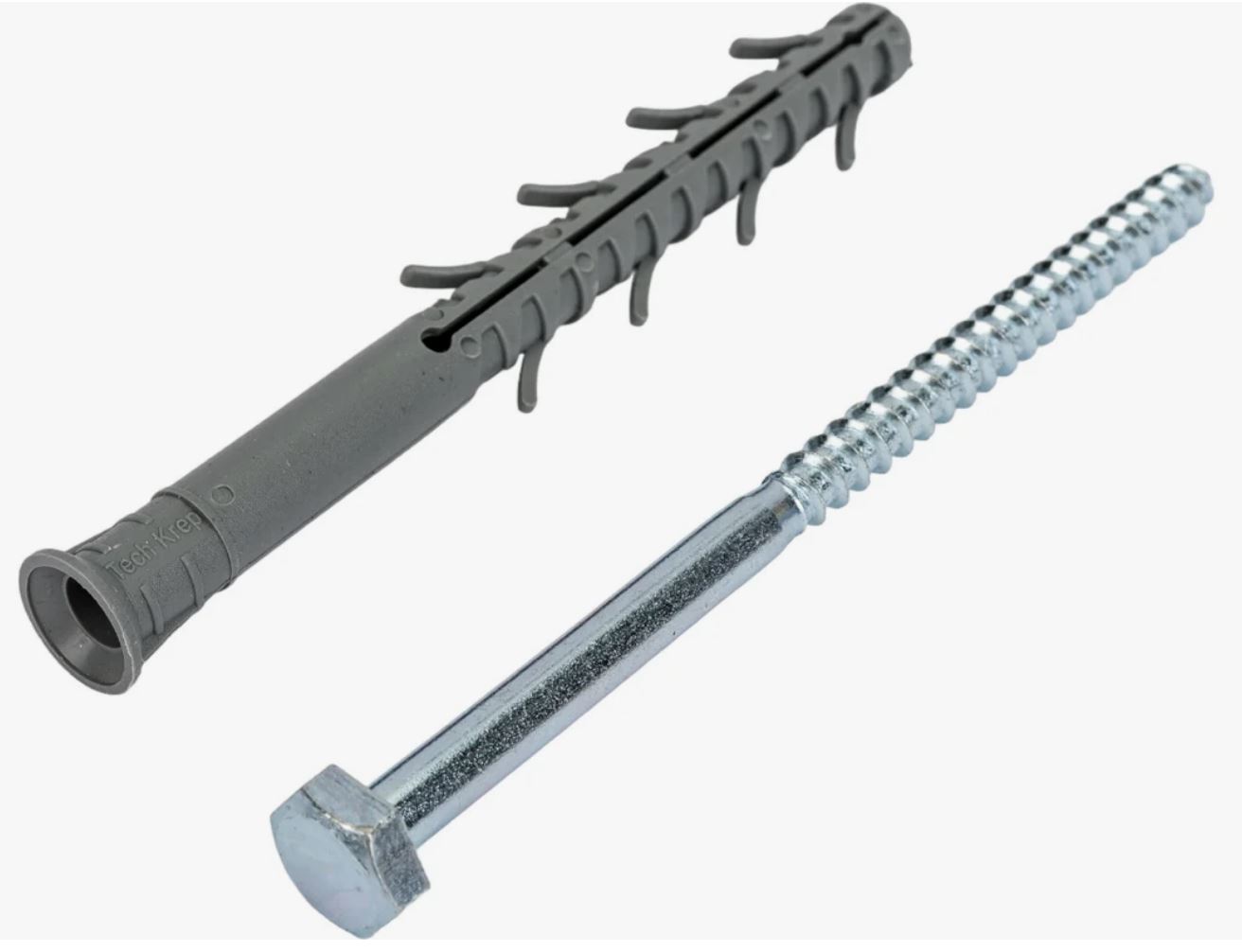 Полиамидный (нейлоновый) распорный рамный дюбель TSX-S, Стальной оцинкованный шуруп с шестигранной головкой в желтом цинке