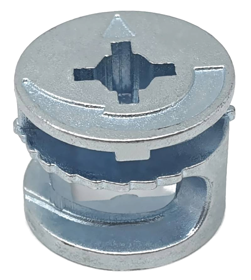 Эксцентриковая стяжка состоит из трех элементов: эксцентрик, шток (стойка)эксцентрика и футока (бонка). Эксцентрик изготавливают методом литья из сплава (замак). Качество сплава и конфигурация эксцентрика напрямую влияет на качество сборки и долговечность . Эксцентрик нашей компании изготовлен из высококачественного сплава и имеет зубцы снаружи и зазубрины внутри, что положительно сказывается на качестве сборки и долговечности. Шток эксцентрика изготавливают из стали. Он бывает различных видов и конфигураций. В нашей эксцентриковой стяжке используется стойка (шток) с рефленым телом. Так же шток (стойка) эксцентрика отличается своей резьбовой частью. Различаются два вида: стойка с саморезной частью и стойка под резьбу М6. Отличие состоит лишь в способе крепления в ДСП. Для более надежного крепления используется вариант с резьбой М6. Данная стойка вкручивается в футорку, которая в свою очередь устанавливается в ДСП. Футорка бывает нескольких видов: пластиковая, стальная и разжимная.