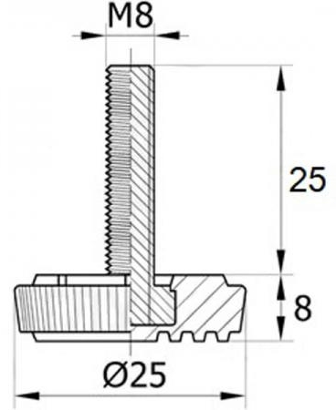 Резьбовые регулируемые опоры используются для регулировки высоты конструкции или отдельных ее частей. Данный вид опор состоит из пластикового основания и металлического резьбового стержня. Основание имеет круглую форму иы имеют насечки по периметру основания для более удобного вкручивания.
