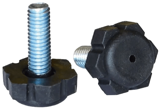Резьбовые регулируемые опоры используются для регулировки высоты конструкции или отдельных ее частей. Данный вид опор состоит из пластикового основания и металлического резьбового стержня. Основание имеет круглую форму иы имеют насечки по периметру основания для более удобного вкручивания.