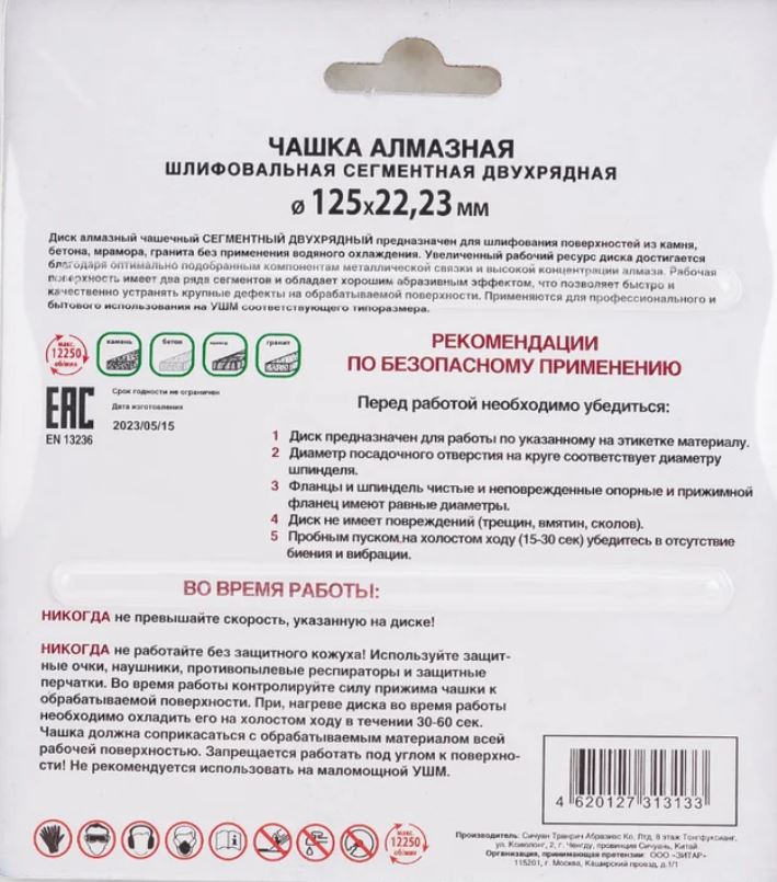 Чашка алмазная 125мм 2-х рядный сегмент / Tsunami