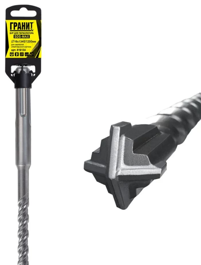 Бур SDS-Max ГРАНИТ используется в перфораторах и отбойных молотках с системой крепления SDS-max для ударно-вращательного сверления. Бур оснащен увеличенной головкой с 4-мя резцами, что обеспечивает высокую скорость прохождения сквозь материал и долгий срок службы. Особая форма спирали ускоряет удаление продуктов сверления, уменьшая нагрев инструмента. Деформация бура от ударных нагрузок исключена за счет усиленного стального стержня. Предназначен для работы по бетону, граниту, кирпичной кладке и твердым известнякам.
