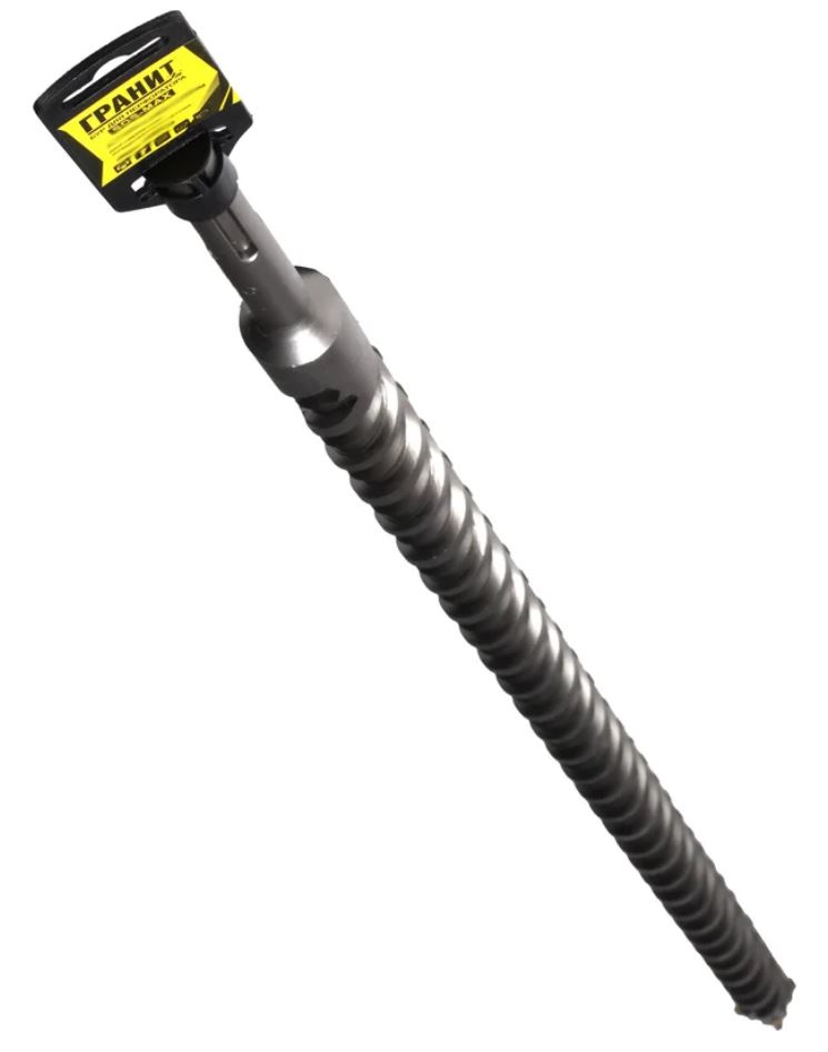 Бур SDS-Max ГРАНИТ используется в перфораторах и отбойных молотках с системой крепления SDS-max для ударно-вращательного сверления. Бур оснащен увеличенной головкой с 4-мя резцами, что обеспечивает высокую скорость прохождения сквозь материал и долгий срок службы. Особая форма спирали ускоряет удаление продуктов сверления, уменьшая нагрев инструмента. Деформация бура от ударных нагрузок исключена за счет усиленного стального стержня. Предназначен для работы по бетону, граниту, кирпичной кладке и твердым известнякам.