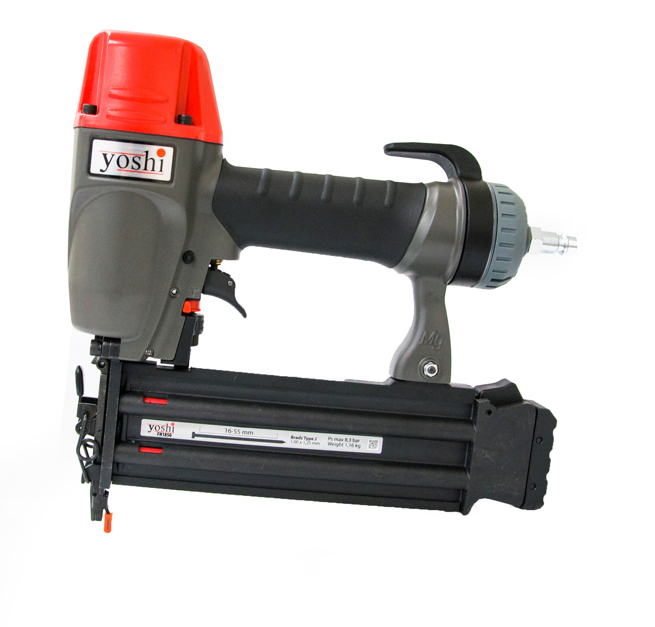 Штифтозабивной пневматический пистолет Yoshi FN1850. Предназначен для производства окон, дверей, мягкой и корпусной мебели, декоративной отделки.