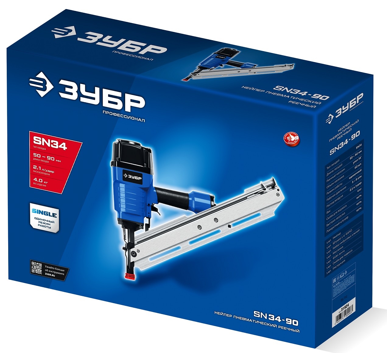 Пневматический нейлер для реечных гвоздей ЗУБР SN34-90,(50-90 мм)