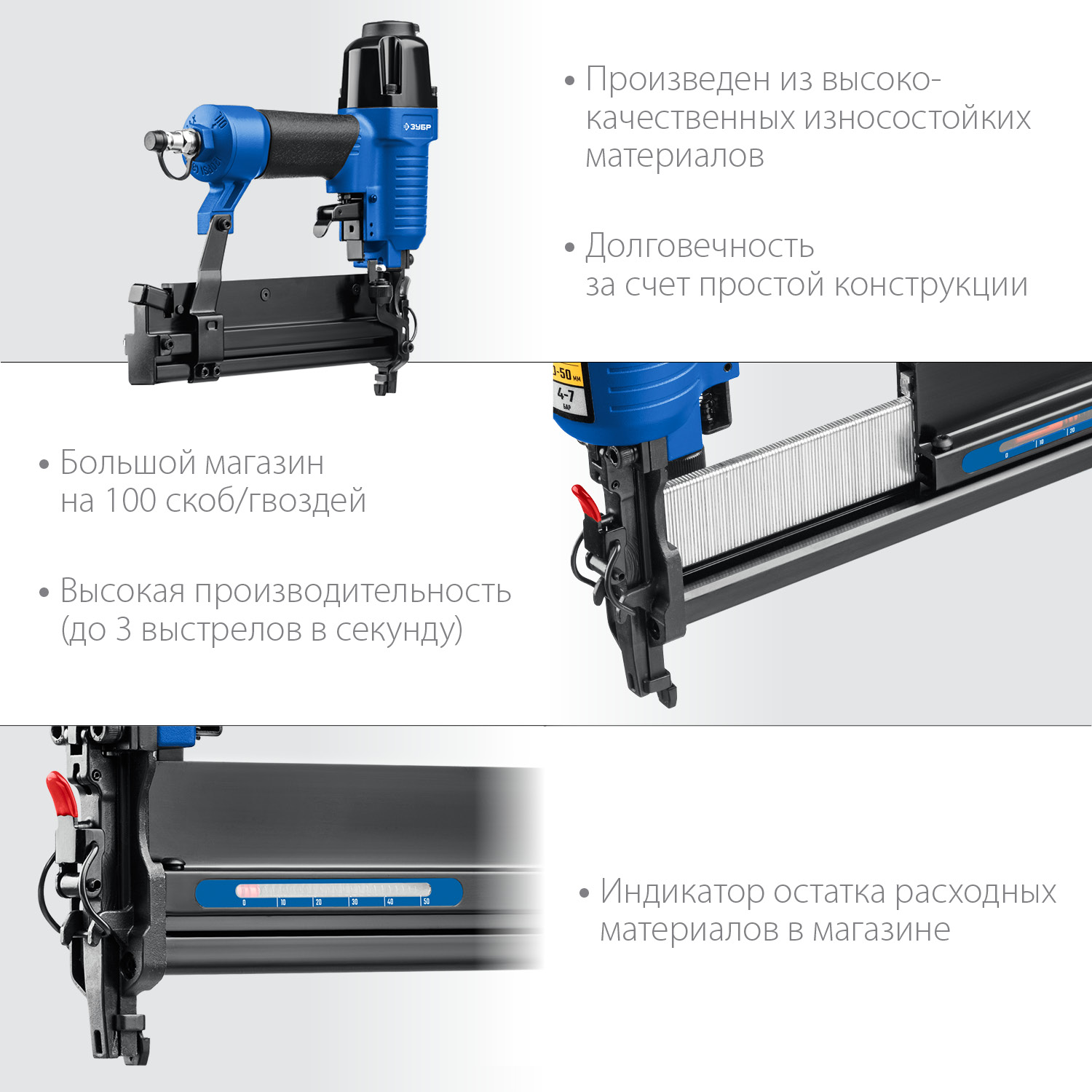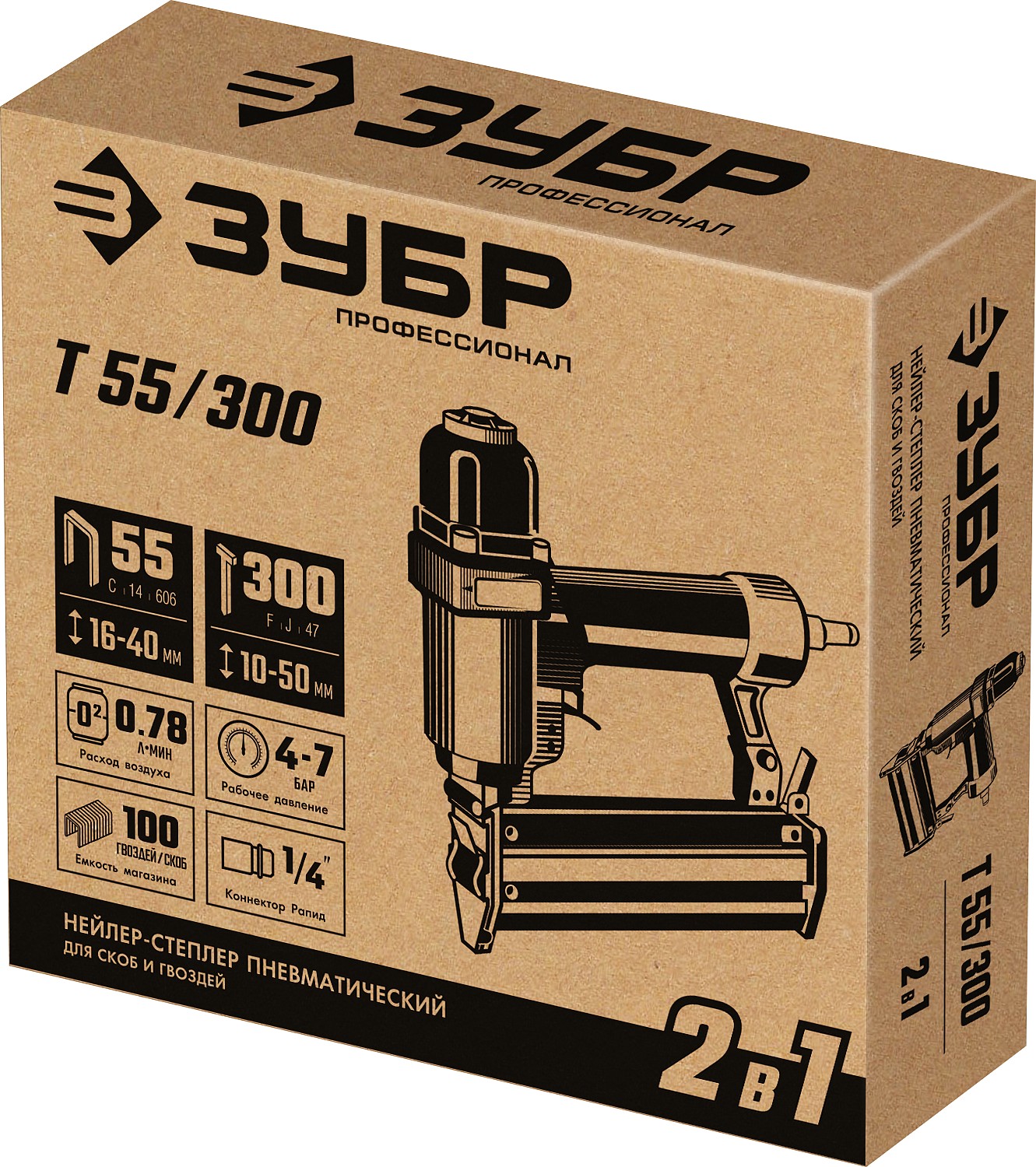 Нейлер-степлер пневматический 2 в 1 Т55/300, ЗУБР Профессионал