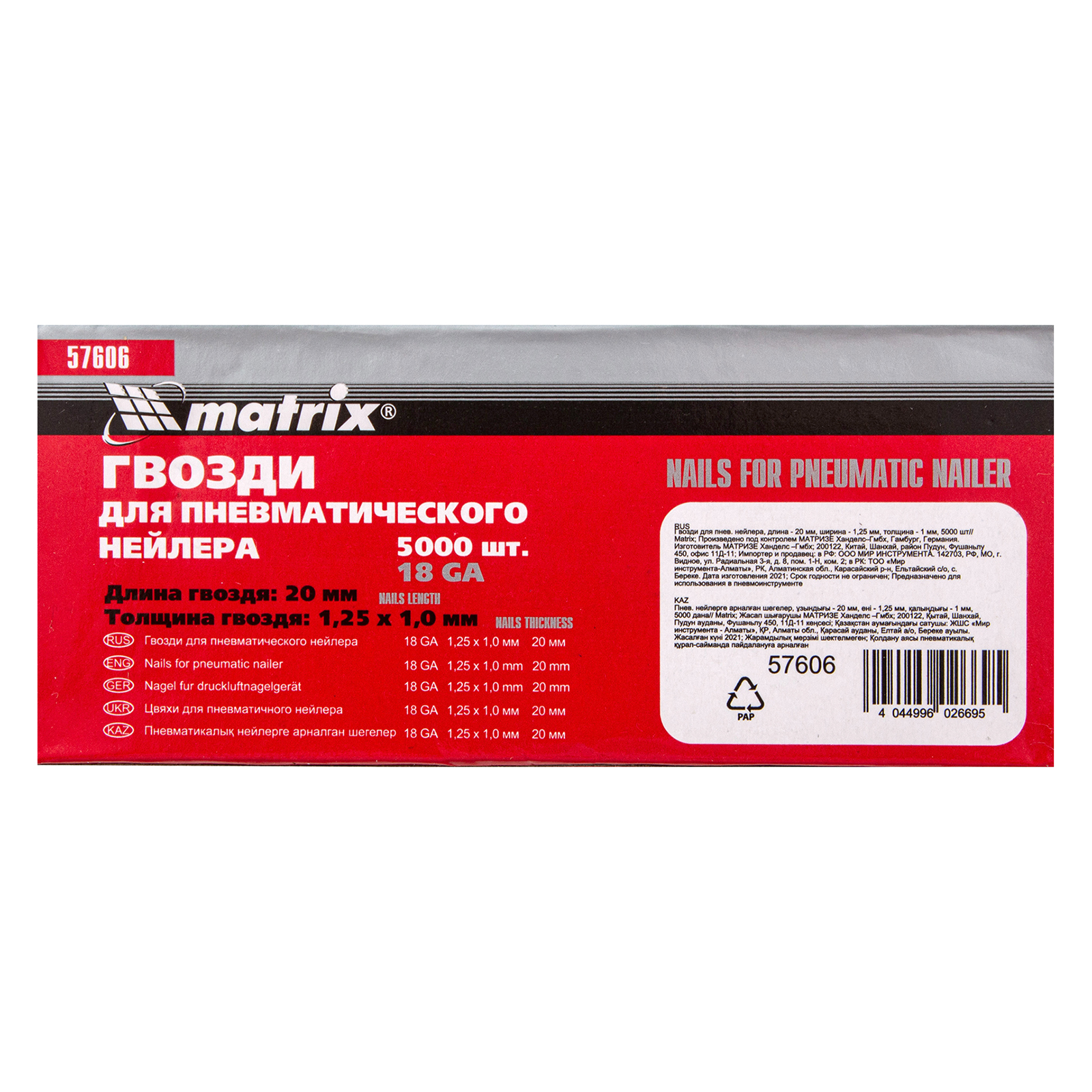 Гвозди 20мм х 1,25мм х 1мм тип 18GA для пнев. нейлера 5000 шт.
