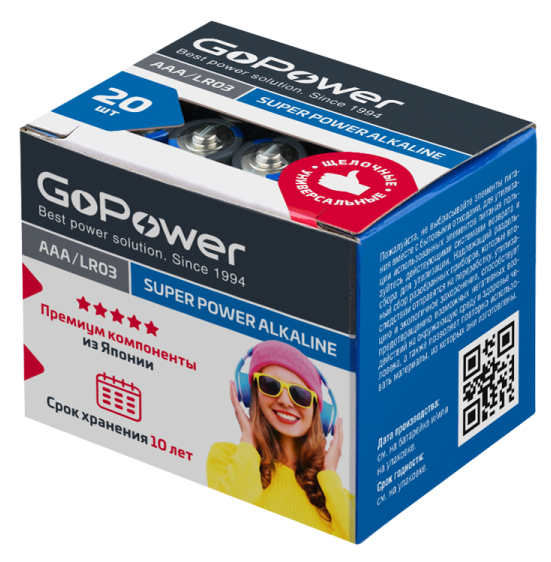 Щелочные батарейки GoPower серии SUPER POWER ALKALINE универсального назначения, они идеально подходят для большинства современных устройств. Благодаря улучшенной формуле эти элементы питания работают дольше.