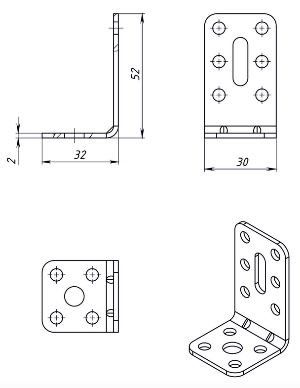 Уголок регулируемый 32х52х30х2.0